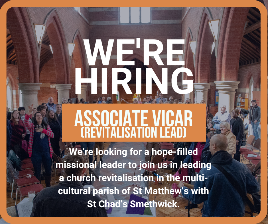 We are in an exciting time as a church as we step into a new chapter of growing God’s kingdom beyond Bearwood. We are looking for a hope-filled, missional leader to join our thriving church and lead the revitalisation of the neighbouring multi-cultural parish of St Matthew’s with St Chad’s Smethwick.